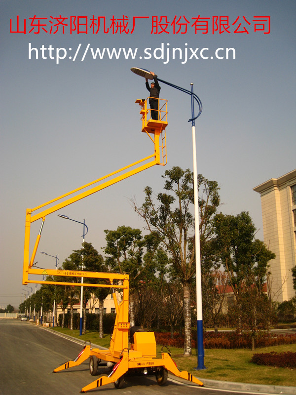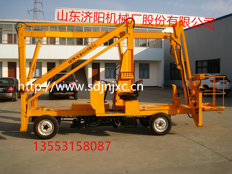 一、產(chǎn)品說明:曲臂式升降機(jī)是山東濟(jì)陽機(jī)械廠最新研制的高空作業(yè)設(shè)備,具有操作簡單體積小,重量輕,價(jià)格便宜,外形美觀、作業(yè)面積大、移動方便,特別是能夠跨越障礙物進(jìn)行作業(yè)等優(yōu)點(diǎn)、是理想的登高作業(yè)設(shè)備。廣泛應(yīng)用與車站、碼頭、賓館大廳、倉庫、車間以及供電和建筑裝璜等部分需要高空作業(yè)的場合。